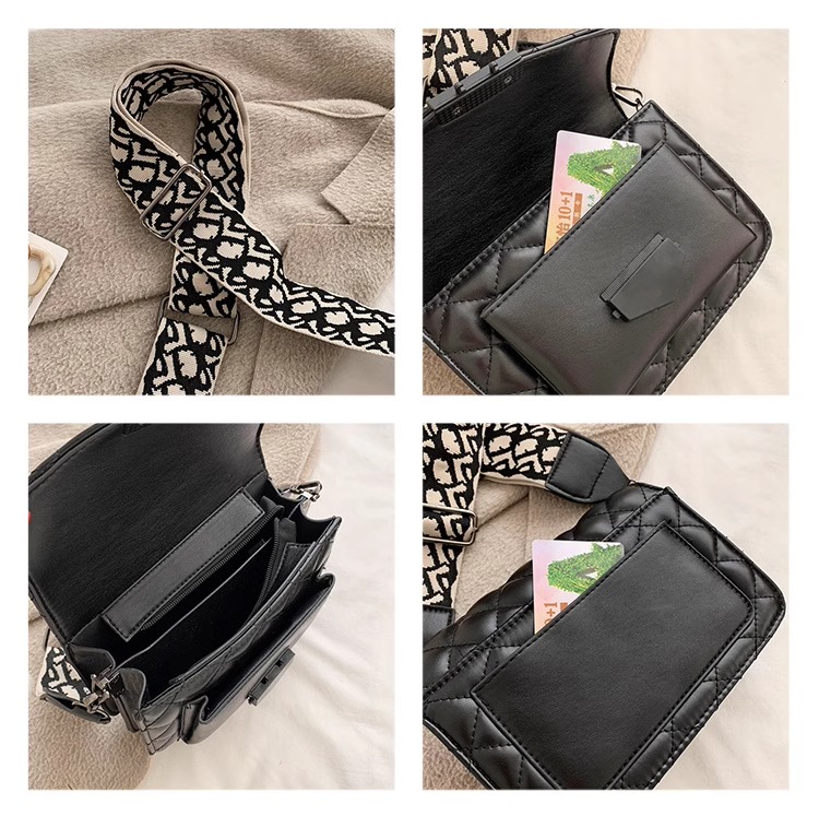 Western Style Delicate Pouch Women's Spring/Summer Fancy Easiest for Match Shoulder Small Square Bag Quilted Fashion Wide Strap Crossbody Bag